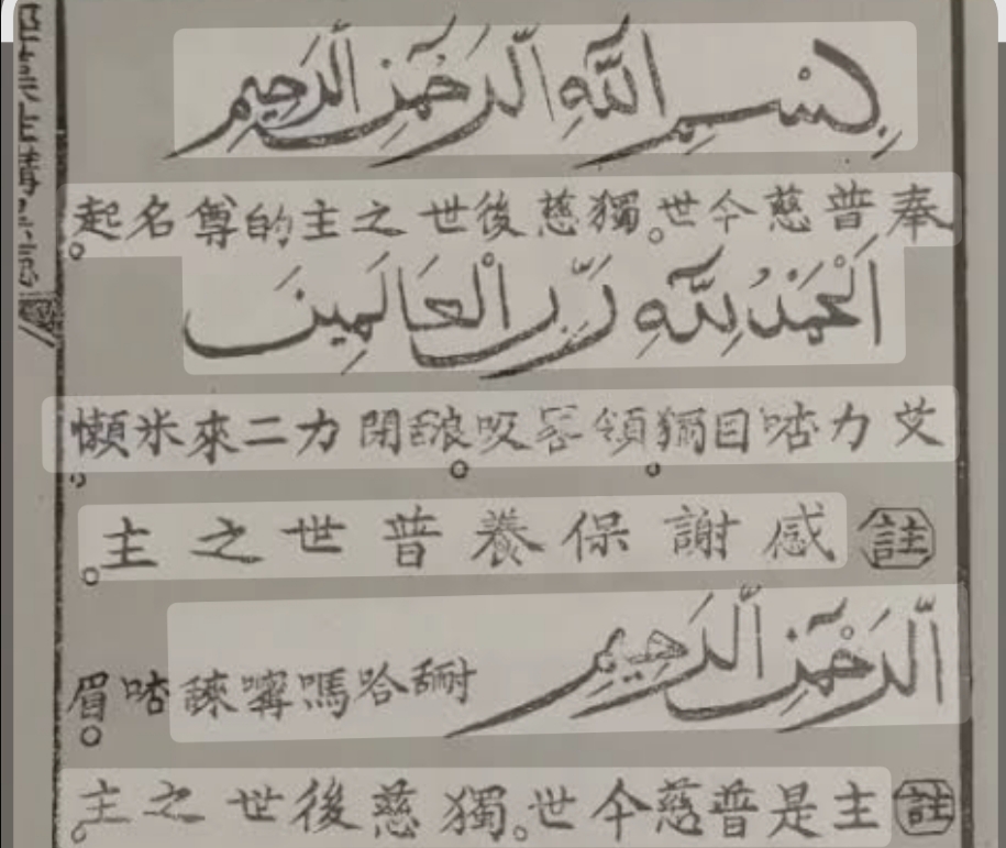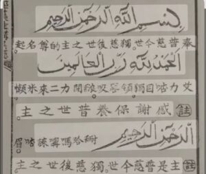 Aksara Hanzi adalah aksara masyarakat Tiongkok, yang sebagian menganut agama Islam. Islam sendiri telah hadir di Tiongkok sejak abad ke-7 Masehi dan dianut oleh sekitar 17-25 juta Muslim dari berbagai kelompok etnis minoritas, terutama suku Hui dan Uighur.