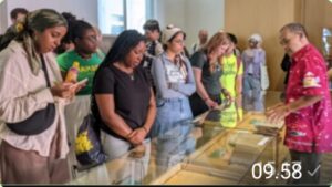 Rombongan mahasiswa Inggris memperhatikan peradaban literasi Nusantara di Museum Pendidikan Surabaya. Foto: dok par