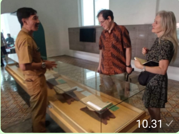Peneliti dan ilmuwan asal Belanda Max Meijer dan Petra Timmer memperhatikan koleksi manuskrip Museum Pendidikan Surabaya. Foto: kol par