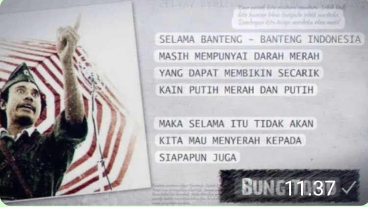 Bung Tomo pun dengan lantang berucap yang sangat membakar semangat arek arek Surabaya: “…selama banteng-banteng Indonesia masih mempunyai darah merah, yang dapat membikin secarik kain putih merah dan putih, maka selama itu tidak akan kita akan mau menyerah kepada siapapun juga…”