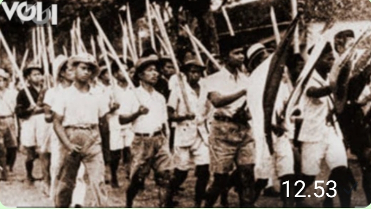 Mereka berjuang meski memanggul bambu runcing. Padahal yang mereka hadapi senjata mesin yang siap menghancurkan dirinya. Foto: ist