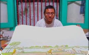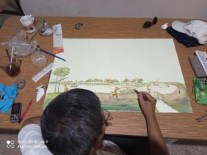 Rajapatni.com: SURABAYA – Tulisan berikut adalah salinan dari berita koran JP yang terbit pada 29 April 2021 ketika Sketcher Surabaya Budi Irawan sedang mereplika lukisan Surabaya (1750) oleh Johannes Each.