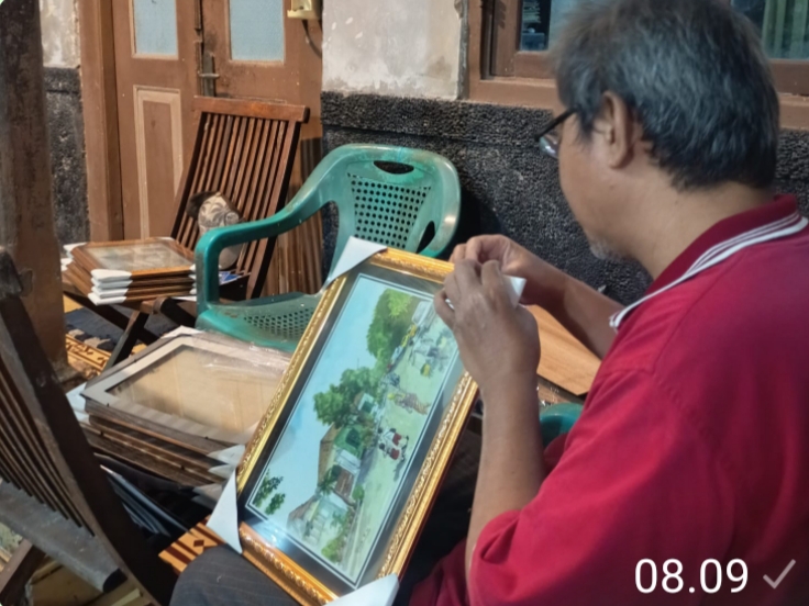 Budi di kampung Pandean II Surabaya mempersiapkan pamerannya.. Foto: nng