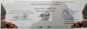 Perhatian itu ꧌ꦠꦼꦂꦮꦸꦗꦸꦢ꧀꧍ terwujud melalui dukungan penandatanganan ꧌ꦉꦱ꧀ꦩꦶ꧍ resmi pada Sertifikat Kepesertaan bagi peserta dari tingkat SD dan SMP, yang memang diampu oleh Dindik ꧌ꦏꦺꦴꦠꦯ꦳ꦫꦨꦪ꧍ Kota Surabaya.