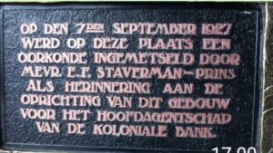 Belum lagi nama nama prasasti buatan lama pada gedung gedung yang didirikan pada masa kolonial. Seperti misalnya: “Deze Eerste steen is gelegd op den 8sten Maart 1915” di gedung Maybank dan “Ontwerp C.P. Wolff Schoemaker arch. Uitvoering Hollandsche Beton M.V. en A.I.A., Bureau” di Gedung PTPN jalan Jembatan Merah.