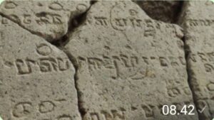 Pecahan prasasti dalam aksara Kawi di Pusat Informasi Majapahit Trowulan. Foto:ist