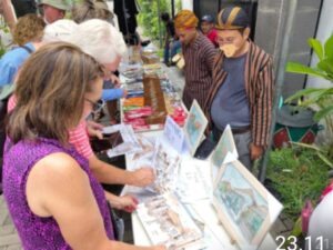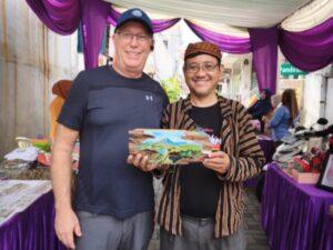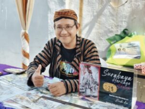 Rajapatni.com: SURABAYA – Perupa Budi Irawan (Budi AN) sebagai warga kampung Pandean di lingkungan Kelurahan Peneleh Surabaya tak pernah lepas dari ramainya kunjungan wisatawan dari Kapal Pesiar, yang stop di Surabaya. Mereka juga berkunjung ke Kampung Peneleh
