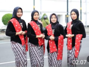 Di antara para pengguna busana adat itu, ada satu pengunjung yang bukan mengenakan busana kebaya untuk dekorasi tapi lebih ke fungsi.