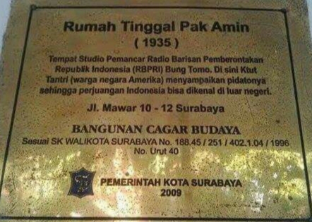 Plakard Cagar Budaya Rumah Radio Bung Tomo..Foto: dok