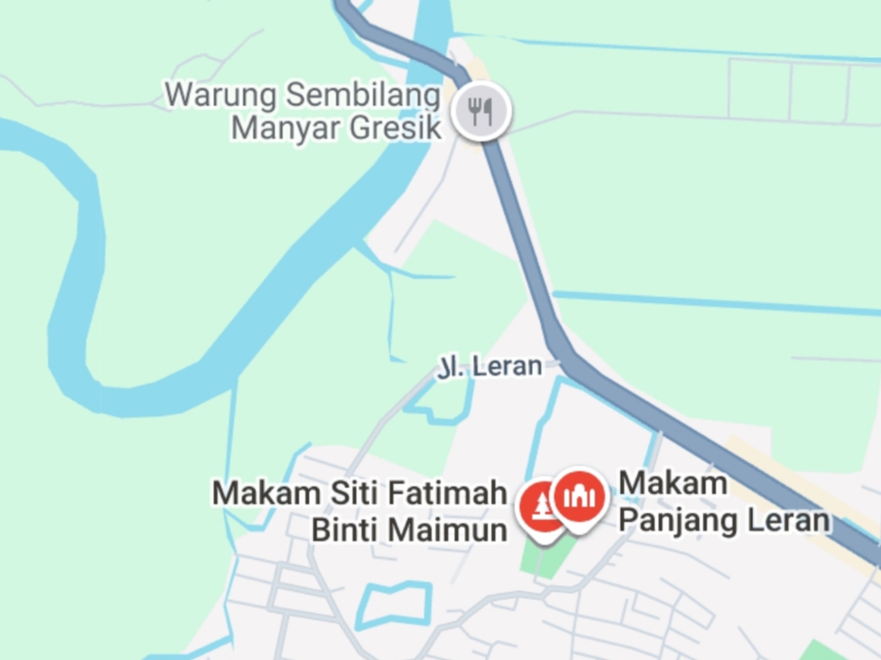 Padahal ada lokasi lain, yang diindikasikan sebagai lokasi pelabuhan kuno. Letaknya di sebuah delta antara sungai Bengawan Solo di Utara dan anak sungai Brantas alias Sungai Surabaya di selatan. Posisinya ada di wilayah kabupaten Gresik. Tepatnya di Leran, yang sebagian kekunoan itu ditandai dengan adanya makam kuno abad 11. Yaitu makam Siti Fatimah binti maimun di desa Leran.