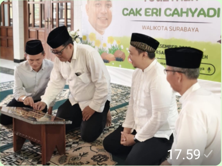 Penandatanganan plakat dari marmer hitam itu disaksikan oleh Ketua Yayasan Masjid Peneleh Surabaya Syarif Thayib dan Lurah Peneleh Skundario Kristianindraputra, S.T.