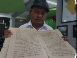 Kolektor di Malang, Lulut Eko Santoso, menunjukkan salah satu koleksi manuscript nya. Foto: ist