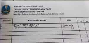 Isian buku tamu ꧌ꦝꦶꦠꦸꦭꦶꦱ꧀꧍ ditulis dalam aksara Jawa. Foto: IS
