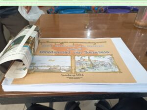 Rajapatni.com: SURABAYA – Sejumlah sketsa Kota Lama Surabaya yang telah berbingkai (berpigura) telah diantarkan oleh perupa Budi Irawan (Budi AN) ke hotel Hotel Arcadia Heritage Rajawali Surabaya pada Rabu sore (15/4/26). Budi, yang datang bersama Nanang Purwono (ketua Puri Aksara Rajapatni), langsung diterima oleh Rully Herlambang (GM hotel Arcadia Heritage Rajawali Surabaya), yang didampingi staff Markom, yang nantinya akan mengolah acara dalam rangka peringatan Hari Warisan Budaya Dunia di hotel ini.