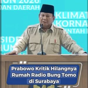 Presiden Prabowo Subianto bertanya tentang masih adakah bangunan cagar budaya rumah radio bung Tomo di Surabaya?