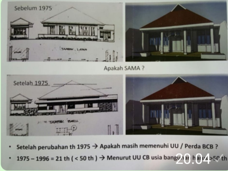Sekali lagi jika dianggap bangunan itu per tahun 1975, mengapa bisa jadi Cagar Budaya? Usianya baru 21 tahun.