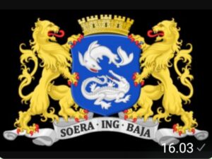 Penggambaran hiu dan buaya pertama kali muncul pada souvenir grup musik St. Caecilia (1848-1858). Lalu pemerintah kolonial meresmikan logo ini sebagai identitas kota Surabaya sekitar tahun 1920, dan kemudian diperkuat dengan motto “Sura ing Baia” (berani melawan bahaya) pada logo resmi pertama. Logo asli Surabaya itu masih ada di bekas museum kota Stadelijl Museum yang sekarang menjadi sekolahan Trimurti Surabaya.
