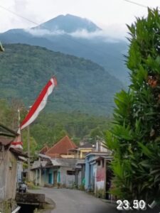 Gunung berdiri menjulang gagah melindungi alam desa, yang tak lepas dari irama gemericik air pegunungan yang mengalir jernih.