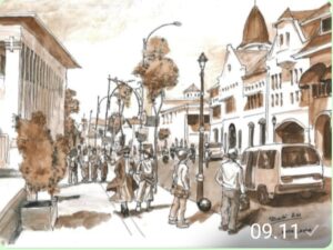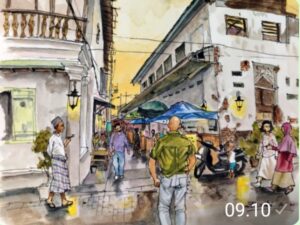Dalam Sketsa ada pengembangan ide, mengeksplorasi bentuk, pelibatan emosi, atau persiapan gambar akhir. Pengalaman ini yang dialami Budi ketika mengekspresikan wajah Kota Lama Surabaya.