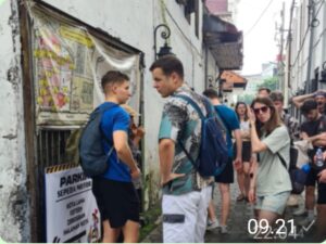 “Ada nuansa sosial dan budaya di antara ruang dan celah gedung gedung tua di Kota Lama Surabaya. Ada pedagang rujak, ada tukang becak dan ada lagi lainnya”, jelas Budi. (PAR/nng).